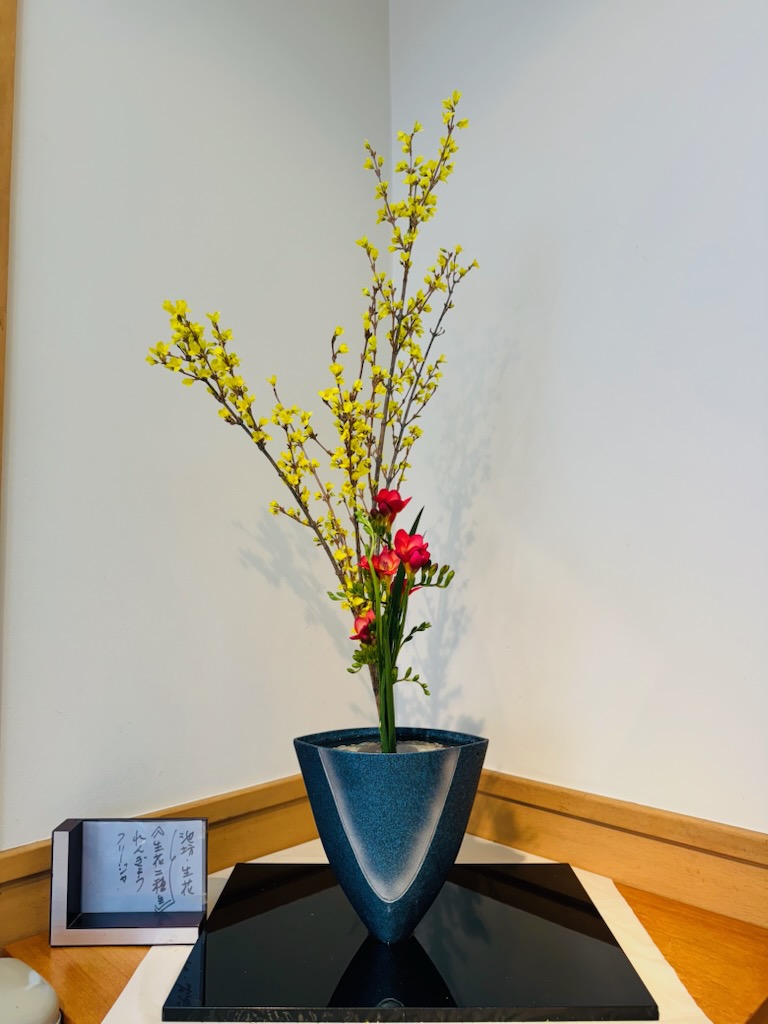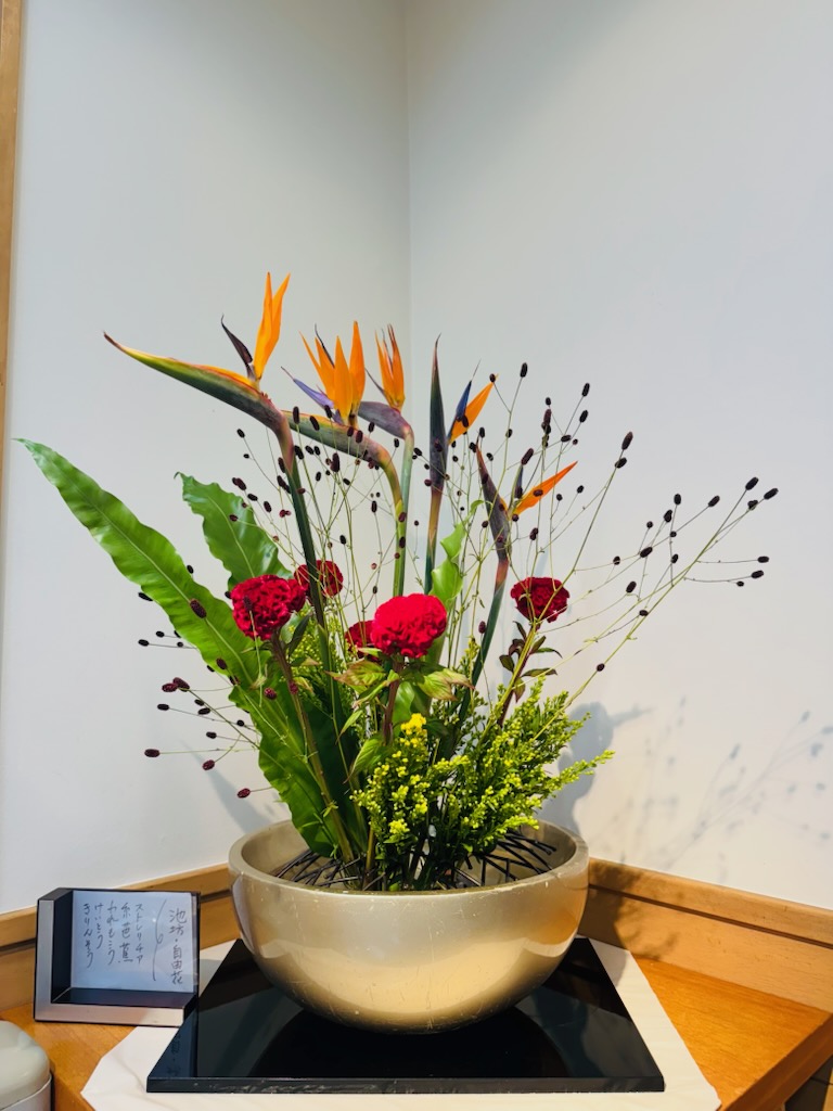 今週のお花は、ストレリチア・糸芭蕉・われもこう・けいとう・きりんそうです。