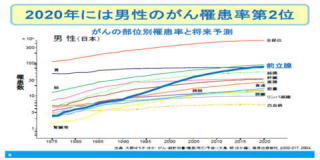 2006年の前立腺がん患者数は4万2千人で、男性では胃、肺、大腸に次いで第4位でした。これが2020年には7万人に達し、肺に次いで第2位になると予想されています。