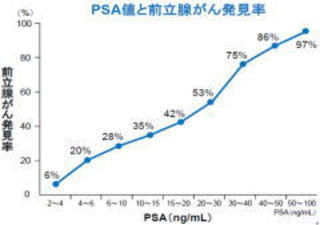 前立腺がんはPSA値が高くなるにしたがって発見率が高くなります。