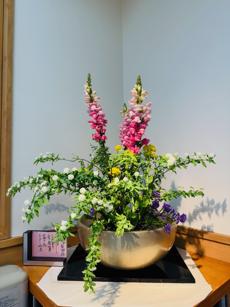 今週のお花は、こでまり・金魚草・菜の花・スターチスです。