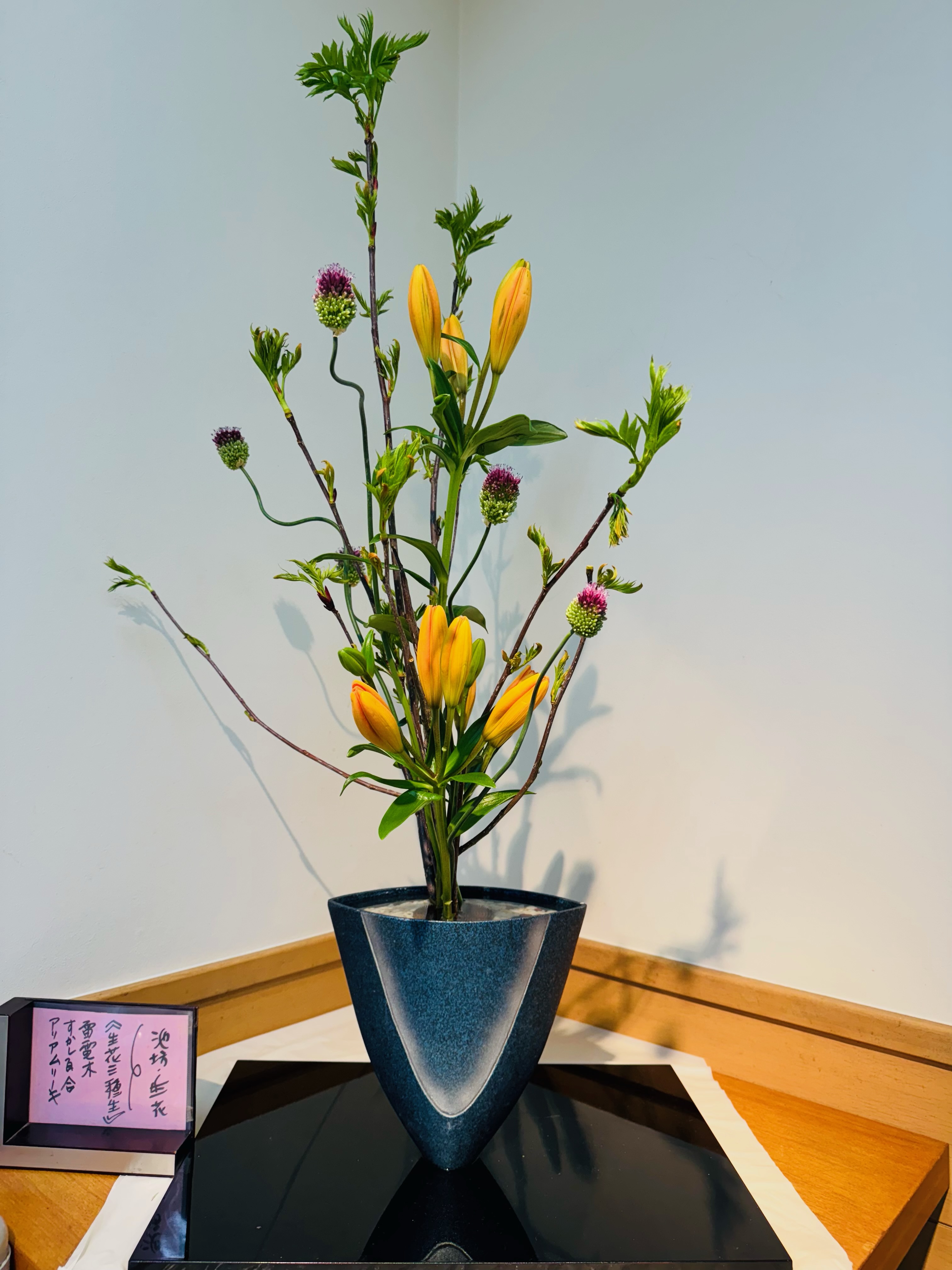 今週のお花は、ストレリチア・彼岸桜・スターチスです。